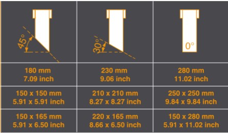 Capacità di taglio: 90° Tondo 280 mm / 45° 180 mm