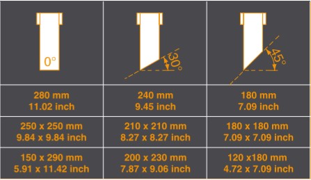 Capacità di taglio: 90° Tondo 250 mm / 45° 180 mm